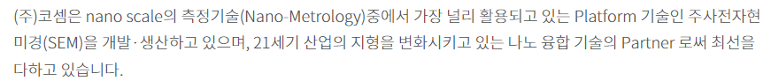 - 코셈은 2007년에 설립된 주사전자현미경(SEM)을 개발하는 전문기업입니다.