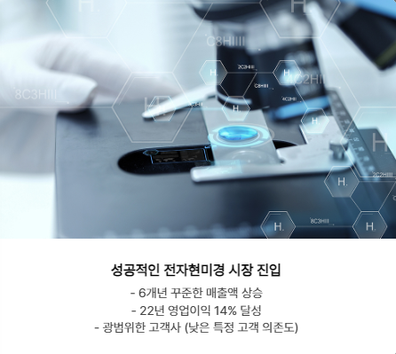 - 탁상형 SEM 제품군은 핵심 성능인 높은 배율과 합리적인 가격 등으로 세계 최고 수준의 경쟁력을 확보했다는 평가입니다.