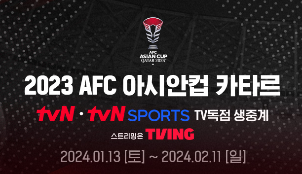 아시안컵 중계는 tvN에서 독점 생중계로 이뤄지고 있습니다. 스트리밍은 TVING에서 이뤄집니다.